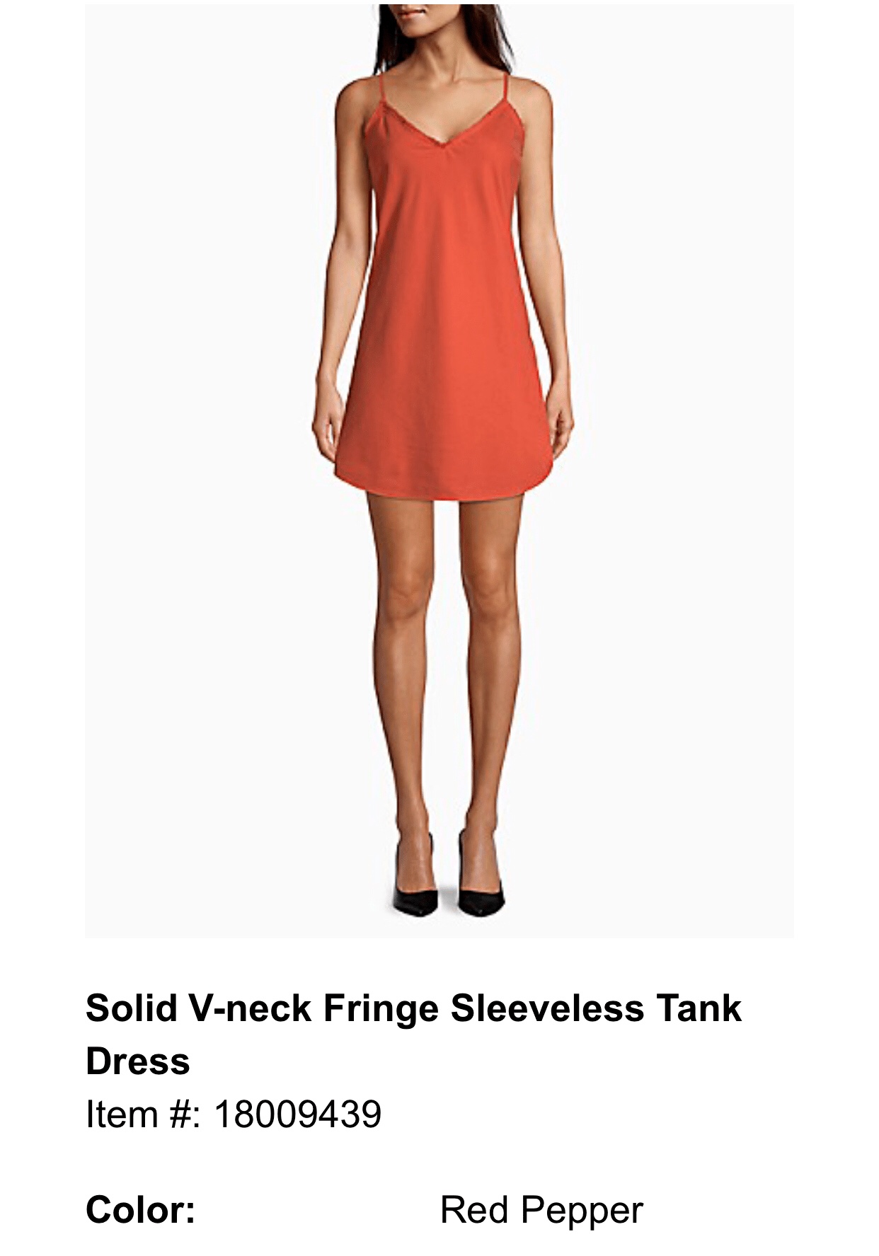 - Dress: Calvin Klein Jeans Solid V-neck Fringe Sleeveless Tank Dress