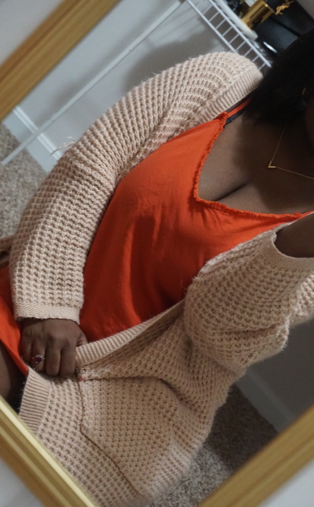 Today’s OOTD is born of necessity. The polar vortex that is currently hitting the USA has a girl colder than a polar bear’s snatch! I still love rocking my dresses though. This time, I paired my dress from Calvin Klein Jeans with a chunky, cardigan. In this weather, layers are a girl’s best friend.