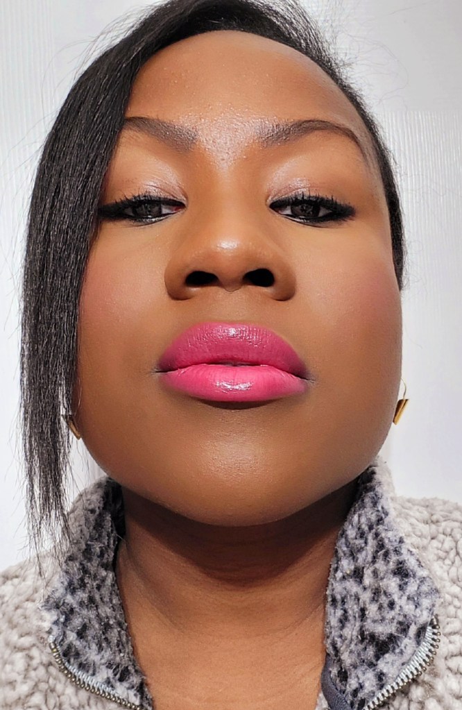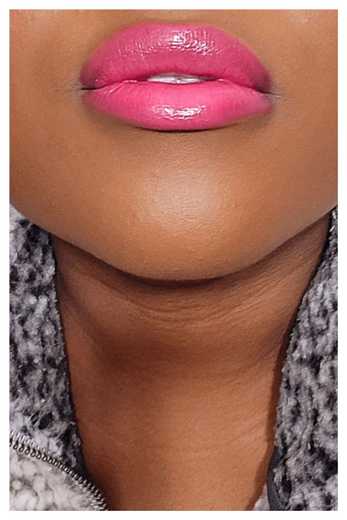 Is it just me or do my lips look like they’re more plump? I was just minding my business and looked in the mirror. To my surprise my lips looked like they had filler in them. I don’t have any before photos to compare, as again I wasn’t looking for this feature. All I have is my anecdotal experience that my lips look fuller when wearing this lipstick.
