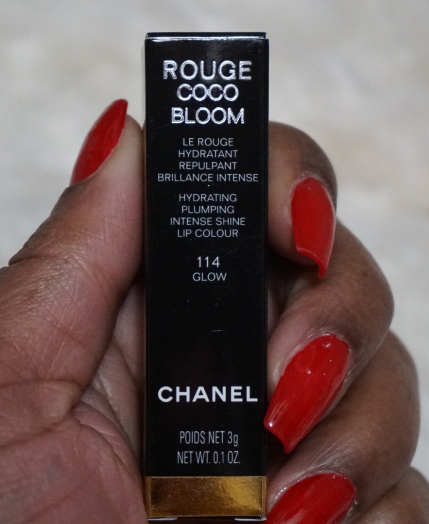 As promised in “No. 1 De Chanel,” I’m revealing my latest lipstick purchase, Rouge Coco Bloom in shade 114 Glow. If you’ve followed my blog for any length of time, then you’ll know how much I love this lipstick from Chanel. It’s very pigmented, hydrating, shiny, and offers a plumping effect too. Since I loved the first shade that I bought from this line, I decided to get another.