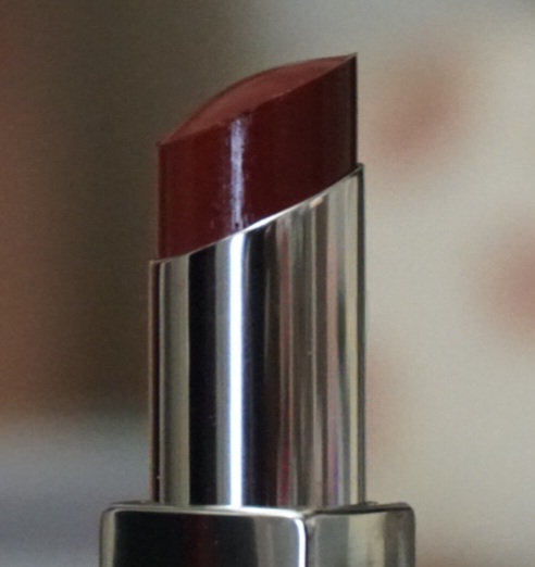 I’m very pleased with this color! I enjoy that it isn’t flashy like reds or pinks, so i can wear it on more casual days. It’s a deep brown with a touch of red and serves very well as a no-fuss color. I don’t need a lip liner with it, so I can re-apply it at will. For these reasons it’s my on-the-go favorite.