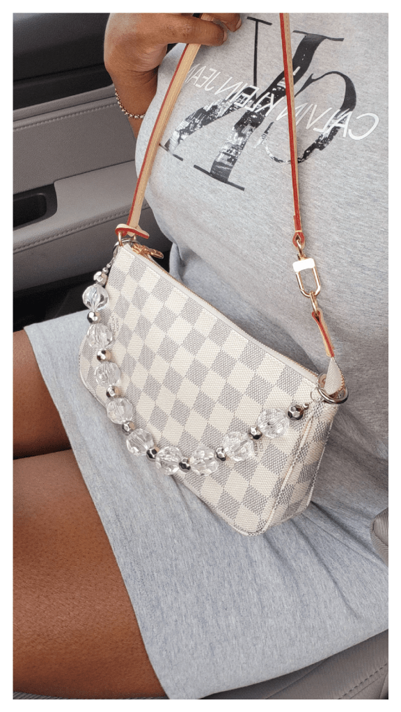 “Fifty Shades Of Grey” highlights a look I put together to style my latest handbag acquisition. I’ve been carrying my Louis Vuitton Pochette Accessoires in Damier Azure and just as I thought, she pairs lovely with light colors. She also looks great with pinks and denim! But for now, let’s get into this look, shall we?