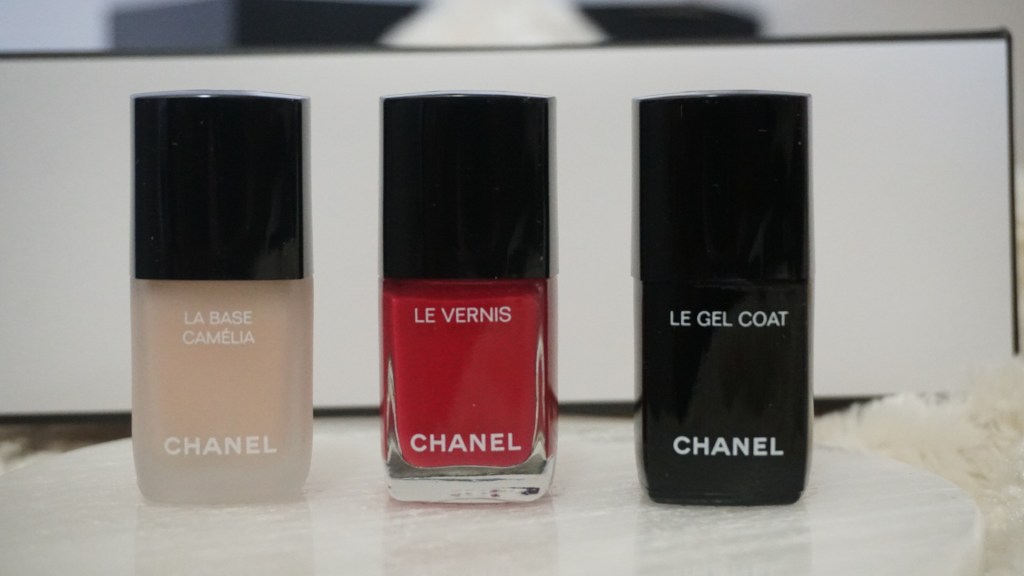 I decided to give my beloved nails a rest from dip powder and picked up some Chanel instead. Being a traditional nail polosh system, I thought it was fair to purchase the base coat, le vernis (polish), and a top coat. I chose the gel-like top coat.