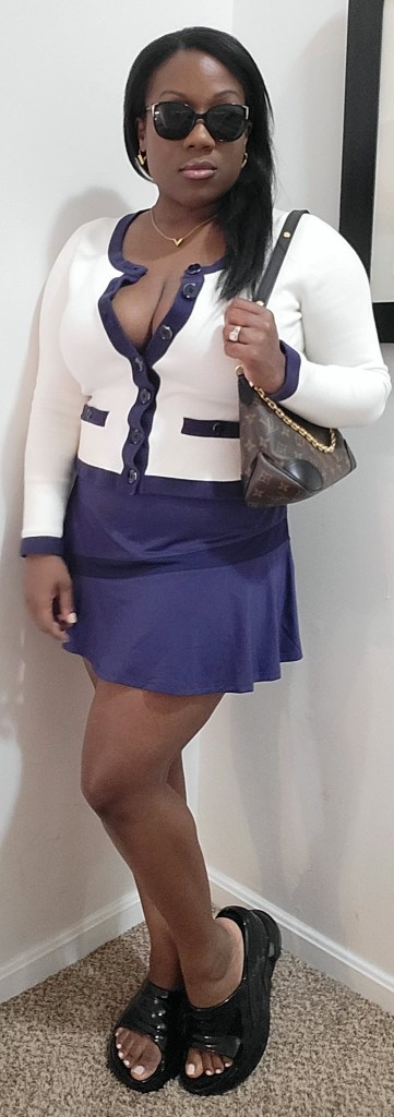 I didn’t plan to resemble one of my favorite cartoon superheroes; it just happened that way. I bought a tennis skirt to match a cardigan I’ve owned for about a decade. It’s very good quality, so I am trying to incorporate it into my wardrobe more often. I looked in the mirror and immediately thought ‘sailor’. Well, so be it!